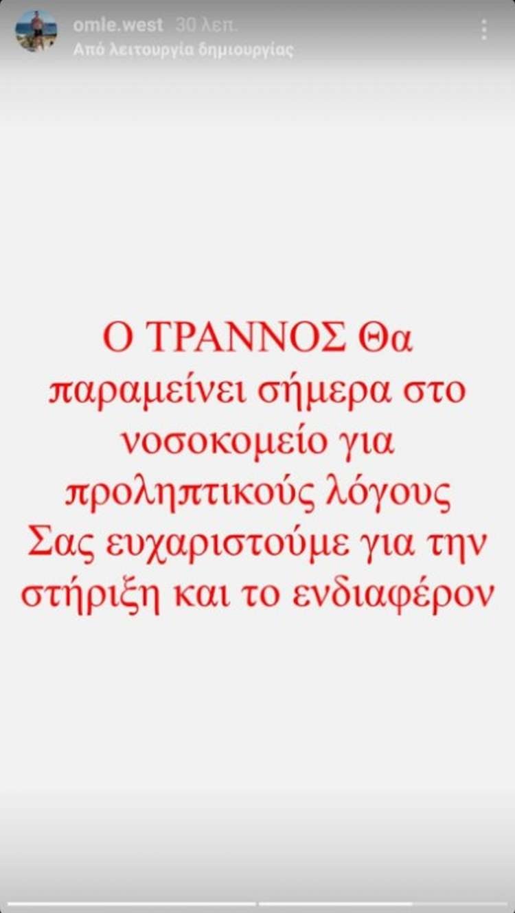 Ο μάνατζερ του τράπερ με storie στο instagram επιβεβαίωσε το γεγονός και ανακοίνωσε πως οι επόμενες εμφανίσεις του θα αναβληθούν μέχρι νεοτέρας.