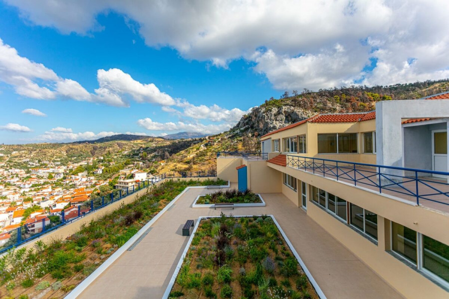 Στο Γυμνάσιο-Λύκειο Λίμνης, η κατασκευή πρότυπης «πράσινης» στέγης με χαμηλή βλάστηση στο αίθριο του πρώτου ορόφου και η αντικατάσταση δύο στεγασμένων κατασκευών με ειδικά καθίσματα στον προαύλιο χώρο, προσφέρουν πολλαπλασιαστικά οφέλη για τη σχολική κοινότητα. Πλέον, οι μαθητές και καθηγητές διαθέτουν προς χρήση ένα χώρο υψηλής αισθητικής, ενώ παράλληλα δόθηκε λύση σε σημαντικό πρόβλημα στεγανότητας που αντιμετώπιζε επί χρόνια το σχολείο. Η ενεργειακή απόδοση τμήματος του κτιρίου δε, υπολογίζεται ότι αναβαθμίστηκε κατά 10%, ενώ βελτιώθηκε αισθητά η ατμόσφαιρα μέσω της φωτοσύνθεσης των φυτών και της συγκράτησης των αιωρούμενων σωματιδίων που είχαν αυξηθεί μετά τις πυρκαγιές. Επιπλέον, η ύπαρξη του νέου οικοσυστήματος, στο οποίο ήδη φωλιάζουν πουλιά και επωφελή έντομα, εκεί που πριν λίγο καιρό βρίσκονταν μόνο πλάκες και τσιμέντο, λειτουργεί ως παράγοντας ευαισθητοποίησης των μαθητών για τη σημασία του φυσικού περιβάλλοντος.