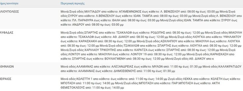 13/9/2022 8:00:00 πμ | 13/9/2022 3:00:00 μμ | ΗΛΙΟΥΠΟΛΕΩΣ | Μονά/Ζυγά οδός:ΜΙΛΤΙΑΔΟΥ απο κάθετο: ΑΓΑΜΕΜΝΩΝΟΣ έως κάθετο: Λ. ΒΕΝΙΖΕΛΟΥ από: 08:00 πμ έως: 03:00 μμ Μονά/Ζυγά οδός:ΣΥΡΟΥ απο κάθετο: Λ.ΒΕΝΙΖΕΛΟΥ έως κάθετο: ΙΩΑΝ. ΤΑΜΠΑ από: 08:00 πμ έως: 03:00 μμ Μονά/Ζυγά οδός:Λ. ΒΕΝΙΖΕΛΟΥ απο κάθετο: ΠΛ. ΠΑΡΑΘΥΡΑ έως κάθετο: ΘΑΛΗ από: 08:00 πμ έως: 03:00 μμ Μονά/Ζυγά οδός:ΙΩΑΝ. ΤΑΜΠΑ απο κάθετο: ΣΥΡΟΥ έως κάθετο: ΑΝΔΡΟΥ από: 08:00 πμ έως: 03:00 μμ | 374 | Εξυπηρέτηση τρίτων |