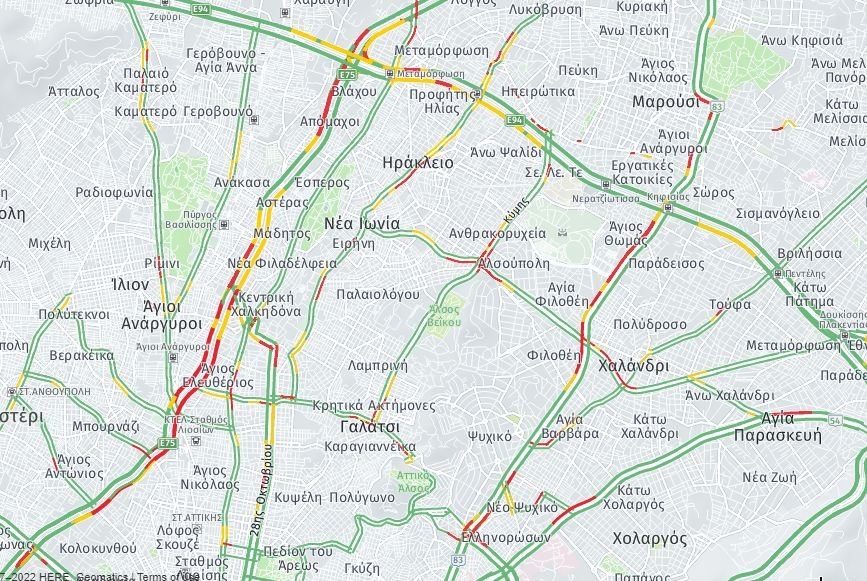 Στο κόκκινο βρίσκεται και η Λεωφόρος Κηφισίας από το Νέο Ψυχικό έως και το Μαρούσι.