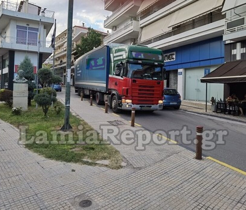 Κυκλοφοριακό κομφούζιο προκάλεσε Σκοπιανός οδηγός που βρέθηκε με την τεράστια νταλίκα του στην πλατεία Λαού, στο κέντρο της Λαμίας, νωρίς το απόγευμα της Δευτέρας (3/10)!