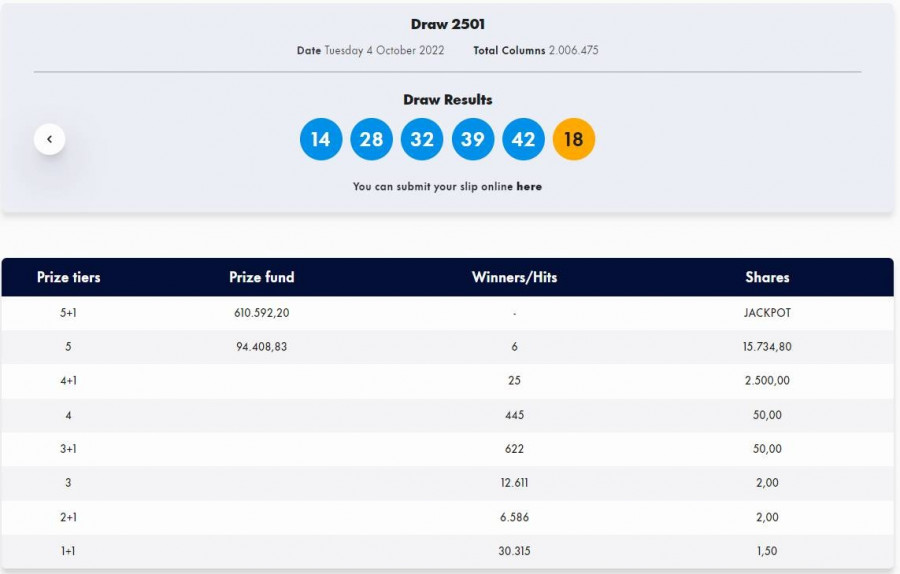 Αξίζει να σημειωθεί ότι από την αποψινή κλήρωση αναδείχθηκαν στην δεύτερη κατηγορία 6 επιτυχημένα δελτία που κερδίζουν από 15.734, 80 ευρώ το κάθε ένα!