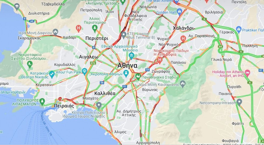 Αυτή την ώρα η κίνηση είναι ιδιαίτερα αυξημένη σε κεντρικούς οδικούς άξονες στην Αττική. Στο «κόκκινο» είναι η Λεωφόρος Κηφισού στην κάθοδο, οι δρόμοι γύρω από το λιμάνι του Πειραιά αλλά και η Αθηνών-Κορίνθου.