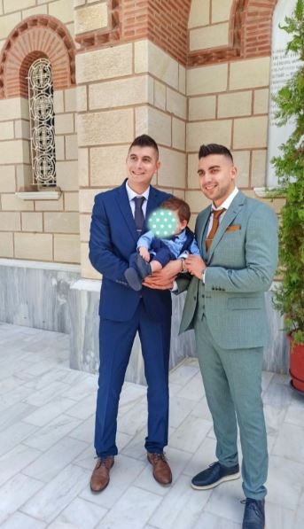 Ο νεοφώτιστος Ραφαήλ - Νικόλαος απολαμβάνει τις αγκαλιές των νονών του, οι οποίοι δεν προέρχονται από το περιβάλλον των γονιών του, αλλά ανέπτυξαν μαζί τους μία σχέση ζωής, όταν πριν από εννέα μήνες, κατά τη διάρκεια έντονης κακοκαιρίας, του έσωσαν τη ζωή.