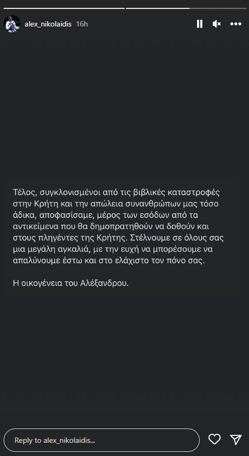 Η οικογένεια με αυτόν τον τρόπο θέλει να βρεθεί έστω και συμβολικά στο πλευρό των συγγενών των 2 θυμάτων της κακοκαιρίας και όλων των ανθρώπων στην περιοχή που περνούν την δική τους δοκιμασία.