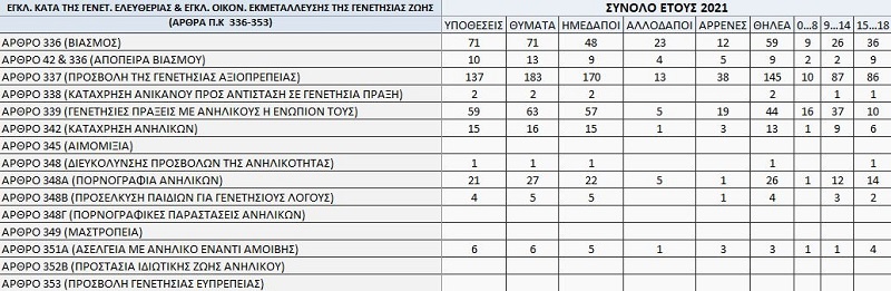 Το 2021 σε 326 υποθέσεις, 387 θύματα.
