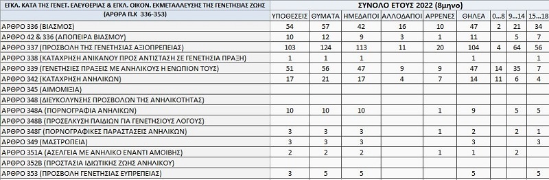 Στο πρώτο οκτάμηνο του 2022, καταγράφονται 257 υποθέσεις με 294 ανήλικα θύματα.
