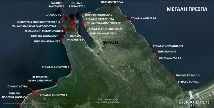 Υπάρχουν, όμως, δεκάδες άλλα άγνωστα σπήλαια, που ήρθαν πρόσφατα στο φως από την επιστημονική έρευνα, που έκαναν σπηλαιολόγοι και επιστήμονες στο ελληνικό μέρος της λίμνης. Η Χριστίνα Μιχελάκη και ο Μιχάλης Κοντός, αρχαιολόγοι της Εφορείας Παλαιοανθρωπολογίας – Σπηλαιολογίας Βόρειας Ελλάδας, μιλώντας στο πρόσφατο συνέδριο για την αξιοποίηση του μνημειακού πλούτου των Πρεσπών, γνωστοποίησαν ότι αναγνωριστικές έρευνες που έγιναν από το 2011 έως το 2019 στη Μεγάλη Πρέσπα, με στόχο την εξερεύνηση και την καταγραφή σπηλαίων, εντοπίστηκαν και χαρτογραφήθηκαν 40 σπήλαια, βάραθρα και βραχοσκεπές στις όχθες της λίμνης, πολλά εκ των οποίων ήταν άγνωστα ακόμη και στους κατοίκους της περιοχής.