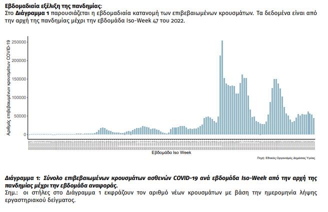 Από την 1η Ιανουαρίου 2020 μέχρι 27 Νοεμβρίου 2022 , στα εργαστήρια που διενεργούν ελέγχους για τον SARSCoV-2 και που δηλώνουν συστηματικά το σύνολο των δειγμάτων που ελέγχουν, έχουν συνολικά ελεγχθεί 13.193.674