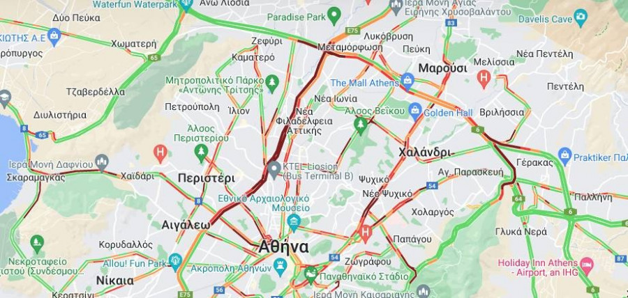 Κίνηση παρατηρείται επίσης στη Θηβών, στην Π. Ράλλη, στην Αλέξάνδρας, στη Μεσογείων, στην Κατεχάκη, στο Γαλάτσι και στον Πειραιά.