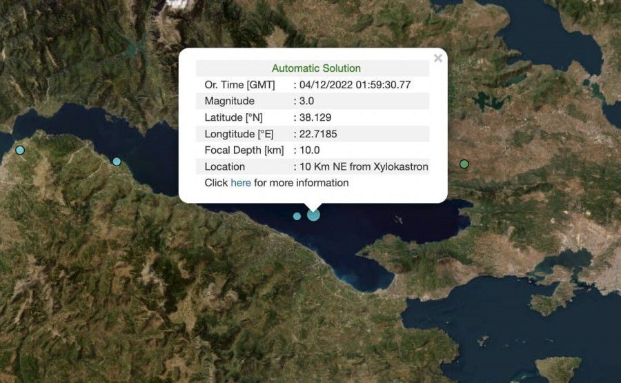 Σεισμική δόνηση μεγέθους 3 βαθμών της κλίμακας Ρίχτερ σημειώθηκε τα ξημερώματα της Κυριακής στις 03:59 11 χιλιόμετρα βορειοανατολικά από το Ξυλόκαστρο.
