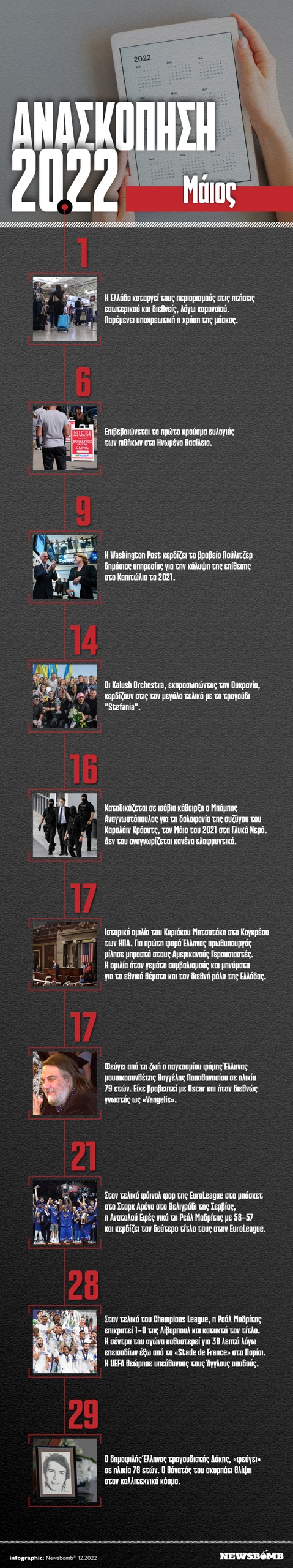 Ανασκόπηση 2022: Τα 10 πιο σημαντικά γεγονότα του Μαΐου της χρονιάς που φεύγει, μέσα από το Infographic του Newsbomb.gr.