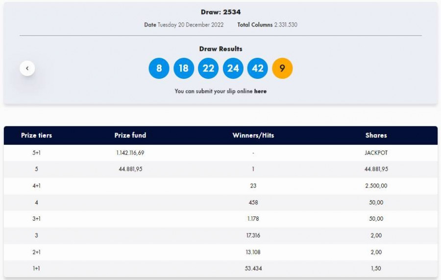 Αξίζει να σημειωθεί ότι στην αποιψινή κλήρωση αναδείχθηκε ένα επιτυχημένο δελτίο που κερδίζει το ποσό των 44.881,95 ευρώ!