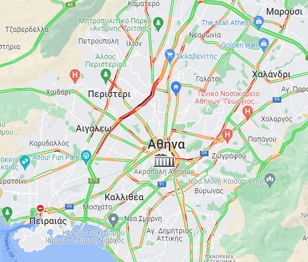 Μποτιλιάρισμα σημειώνεται στον Πειραιά στη Λεωφόρο Ηρώων Πολυτεχνείου και στους γύρω δρόμους, ενώ η Σιβιτανίδου στην Καλλιθέα είναι φρακαρισμένη στο μεγαλύτερο μέρος της.