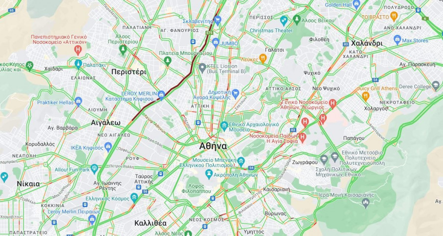 Κίνηση: Στο «κόκκινο» ο Κηφισός - Τροχαίο στη Λεωφόρο Αθηνών