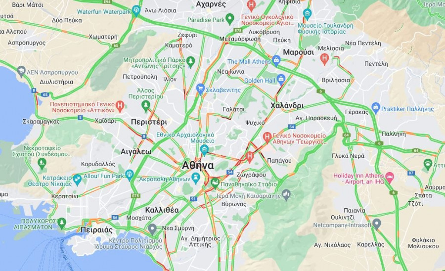 Η κίνηση στους δρόμους της Αθήνας LIVE