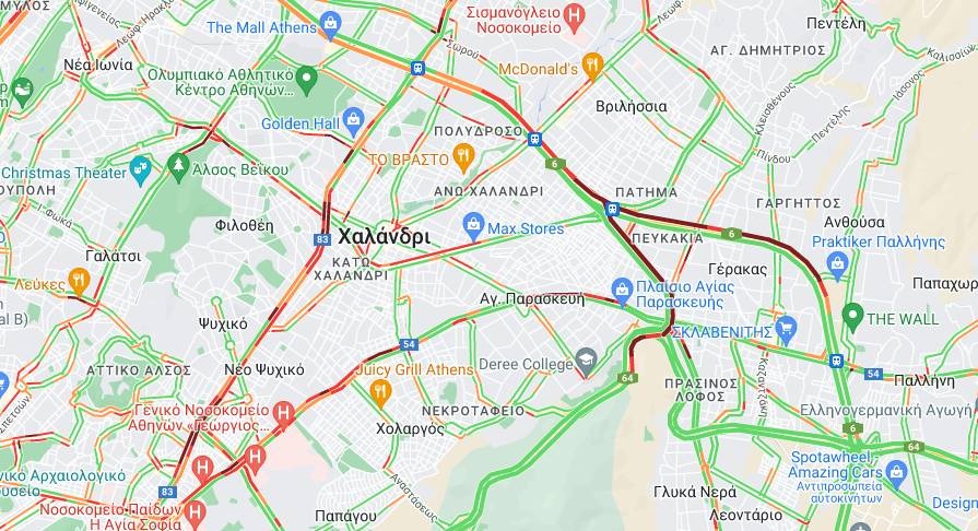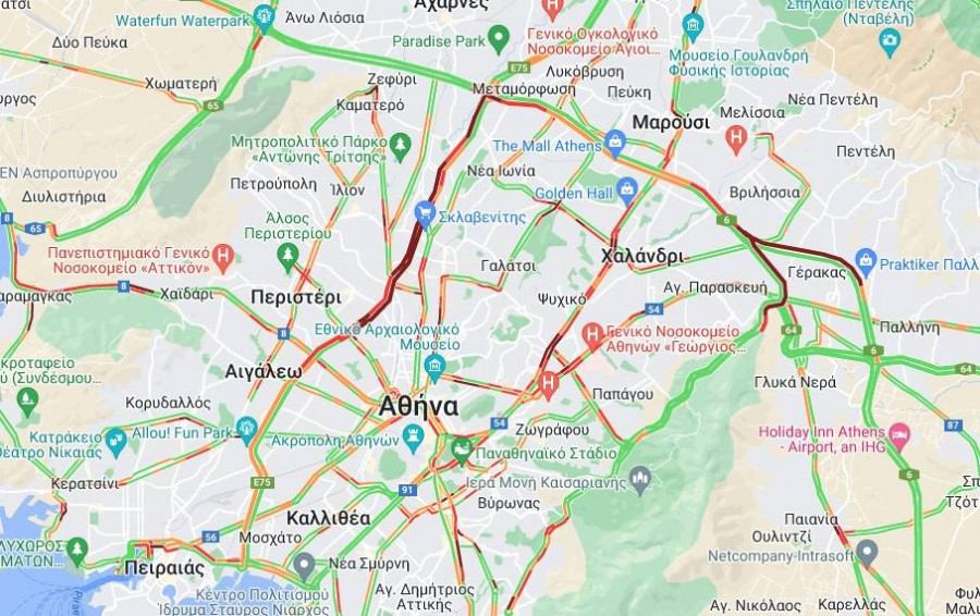 Απροσπέλαστος είναι και ο Κηφισός και στα δύο ρεύματα. Κίνηση παρατηρείται και στην Αθηνών - Κορίνθου στην έξοδο, στην Αλεξάνδρας, στην Κατεχάκη