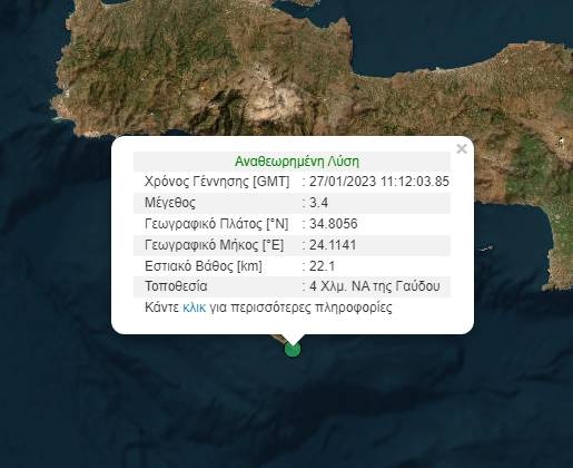 Νέα σεισμική δόνηση σημειώθηκε λίγο μετά τις 13:00 το μεσημέρι ανοιχτά της Κρήτης.