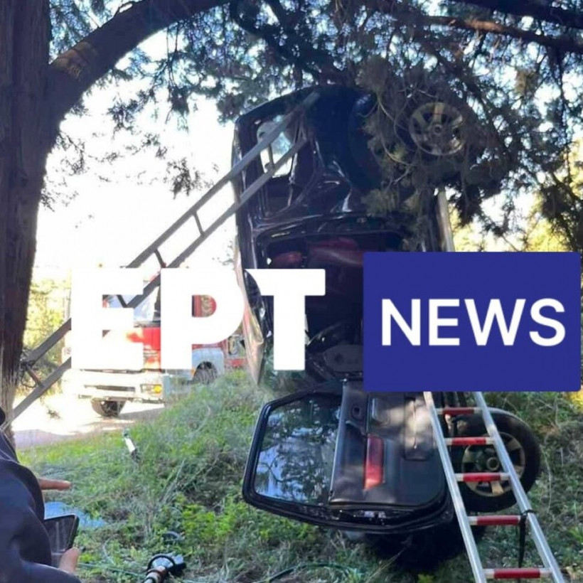 Απίστευτο τροχαίο στα Χανιά: Αυτοκίνητο «κρεμάστηκε» σε δέντρο