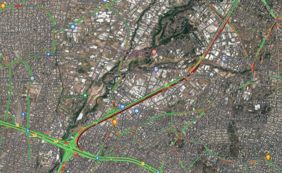 Συγκεκριμένα μποτιλιάρισμα επικρατεί στο ανοδικό ρεύμα από το την Μεταμόρφωση μέχρι και το ύψος της Καλυφτάκη.