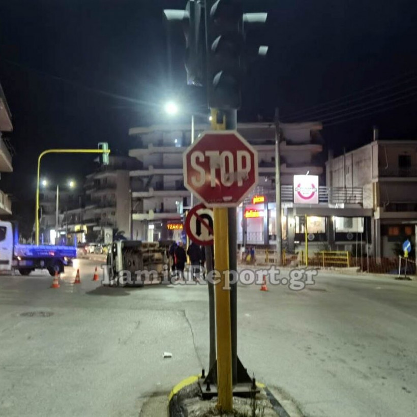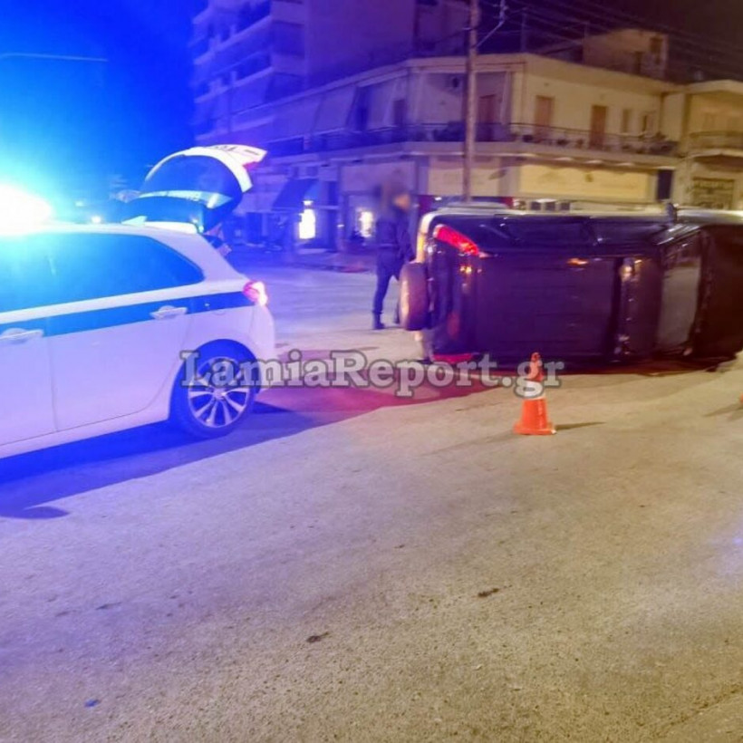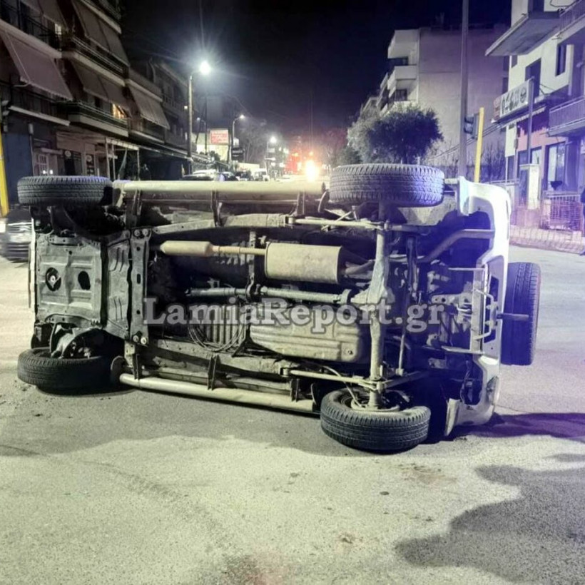 Τουμπαρισμένο στο κέντρο της διασταύρωσης Κύπρου και Αθηνών στη Λαμία βρέθηκε τζιπ το βράδυ της Κυριακής (12/2) λίγο μετά τις 21:30’.