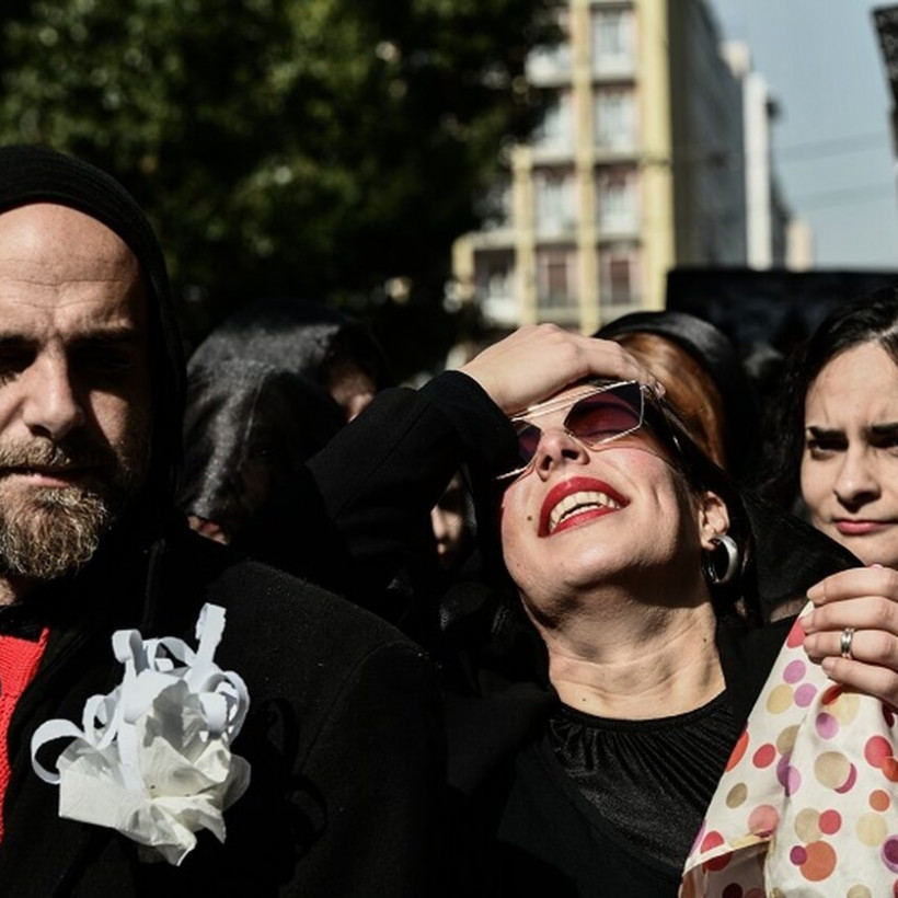 Μαυροφορεμένοι καλλιτέχνες «κηδεύουν» τον Πολιτισμό - Η διαμαρτυρία έξω από το ΣτΕ
