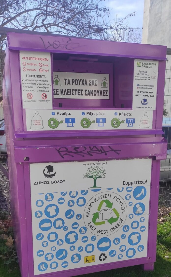 «Ήταν έξυπνη και αναγκαία η κίνηση του Δήμου Βόλου να τοποθετήσει και στην πόλη του Βόλου κάδους ανακύκλωσης ενδυμάτων και υποδημάτων. Παλαιότερα, κάποιοι τα πετούσαν στους κάδους απορριμμάτων ή και στο δρόμο. Τουλάχιστον σήμερα μπορούν οι νοικοκυρές να τα τοποθετούν μέσα στους φρεσκοβαμμένους κάδους ανακύκλωσης ρούχων, για να αξιοποιηθούν…