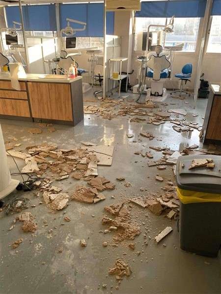 Το πρωί της Δευτέρας, δύο αίθουσες είχαν πλημμυρίσει και είχαν γεμίσει μπάζα, μετά την κατάρρευση μέρους της οροφής λόγω προβλήματος που δημιουργήθηκε στο κτήριο.