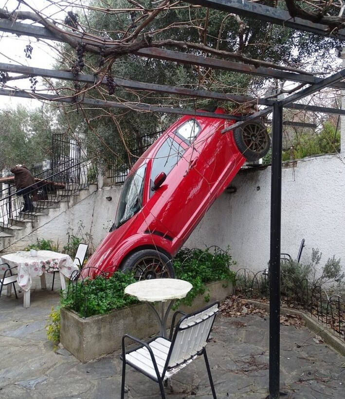 Θεσσαλονίκη: Αυτοκίνητο «προσγειώθηκε» σε… αυλή σπιτιού