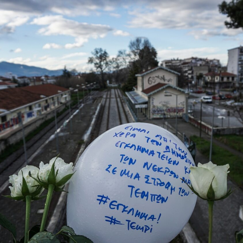 Σε σταθμό του ΟΣΕ των Τρικάλων, με μπαλόνια, λουλούδια, αλλά και σπαρακτικά σημειώματα, κάποιοι θέλησαν να εκφράσουν την ανείπωτη θλίψη τους στη μνήμη των ανθρώπων που έφυγαν άδικα από τη ζωή.