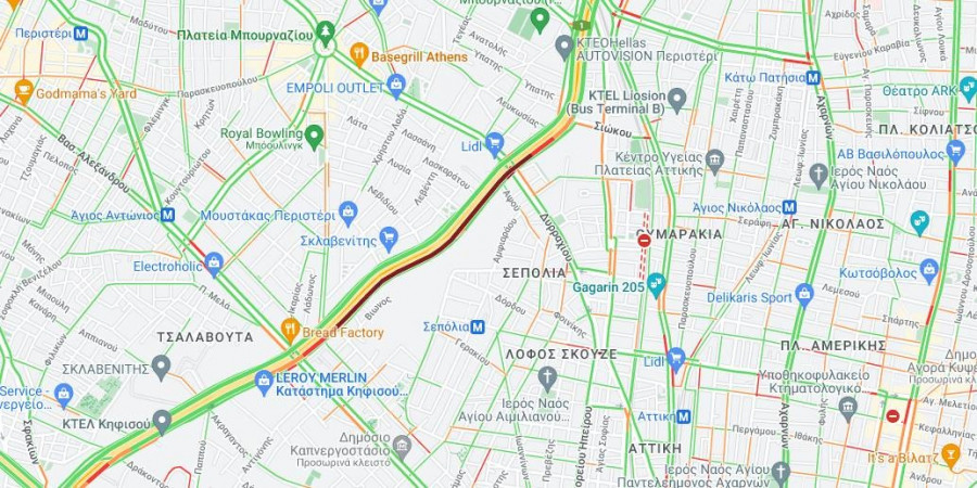 Κίνηση σημειώνεται για αυτόν τον λόγο στο ρεύμα προς Κηφισιά από το ύψος των ΚΤΕΛ Κηφισού μέχρι το Περιστέρι.