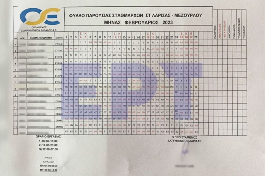 Ως προς το ποιος έχει την τελική ευθύνη για τις βάρδιες, φαίνεται να προκύπει ότι είναι ο προϊστάμενος, ο επιθεωρητής του ΟΣΕ φαίνεται πως έχει βάλει την υπογραφή του και έχει εγκρίνει τις βάρδιες. Δεν είναι γνωστό βέβαια αν πρόκειται για το τελικό έγγραφο.
