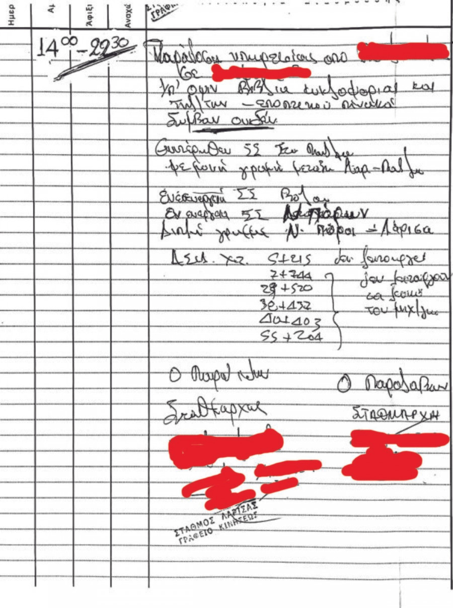 Τέμπη: Διόρθωσαν με μπλάνκο την ώρα αποχώρησης των σταθμαρχών - Φωτογραφία ντοκουμέντο