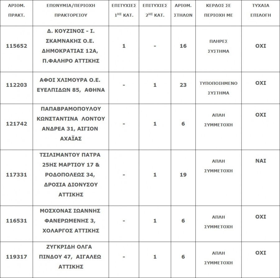 Επίσης στη δεύτερη κατηγορία (5άρια) βρέθηκαν πέντε επιτυχίες, οι οποίες κερδίζουν το ποσό των 39.818,75 ευρώ έκαστη.