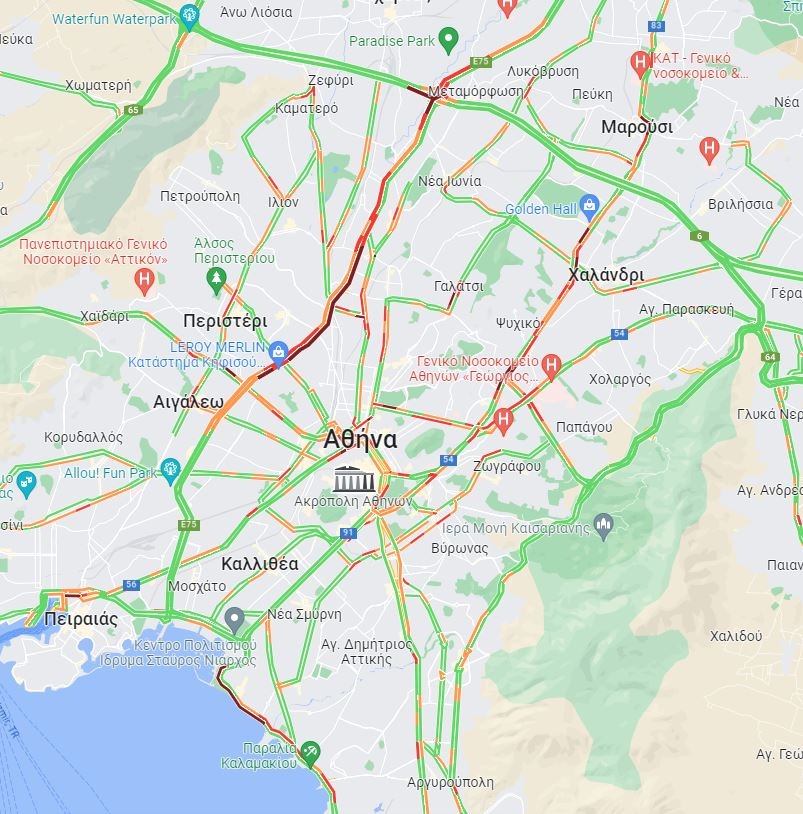 Ιδιαίτερα αυξημένη είναι η κυκλοφορία των οχημάτων την Τρίτη (14/3) με πολλούς κεντρικούς δρόμους να παρουσιάζουν μεγάλες καθυστερήσεις.