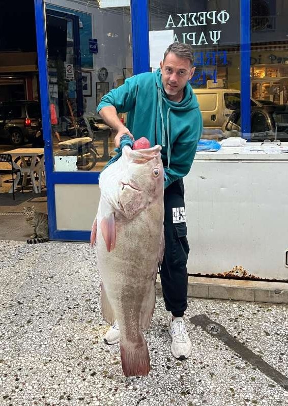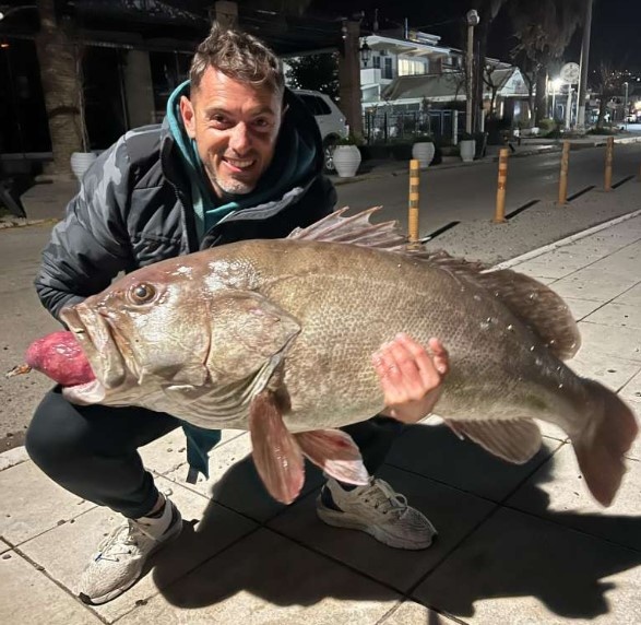 Η περασμένη Τετάρτη ήταν η τυχερή του μέρα. Με ζωντανό δόλωμα και το καλάμι του τσίμπησε κάτι πολύ σπάνιο. Μια σφυρίδα 24 κιλά (όχι βλάχο).
