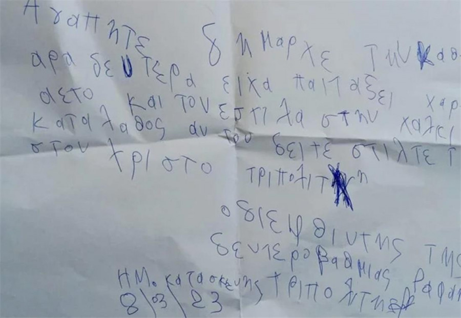 Στο γράμμα που έστειλε ο 6χρονος Ραφαήλ στον Ευάγγελο Φραγκάκη, γράφει χαρακτηριστικά: