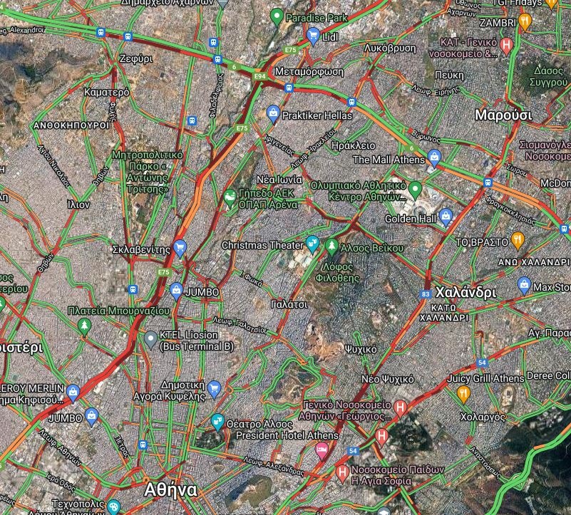Συγκεκριμένα μποτιλιάρισμα παρατηρείται στον Κηφισό, στο καθοδικό ρεύμα από το ύψος της Μεταμόρφωσης μέχρι και τη Νέα Φιλαδέλφεια αλλά και στην άνοδο στο ύψος του Περιστερίου.