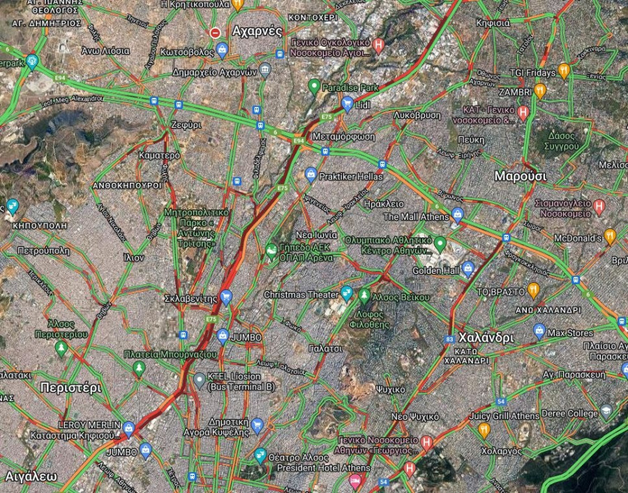 Αλλά και στο ανοδικό ρεύμα η κατάσταση είναι δύσκολη από τα ΚΤΕΛ μέχρι και τη Νέα Χαλκηδόνα.