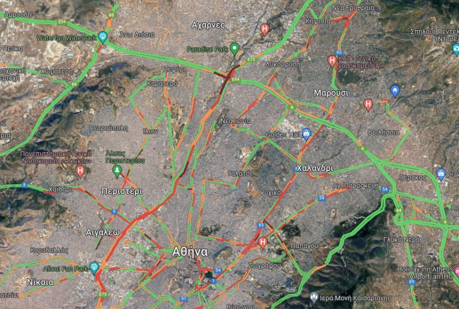 Μεγάλο μποτιλιάρισμα επικρατεί και στην άνοδο του Κηφισού το οποίο ξεκινάει από το ύψος του Ρέντη και φτάνει μέχρι τη Νέα Φιλαδέλφεια
