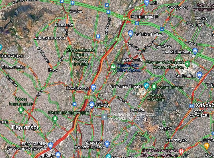 Τα προβλήματα ξεκινούν από το ύψος του κόμβου Μεταμόρφωσης μέχρι και το Περιστέρι.