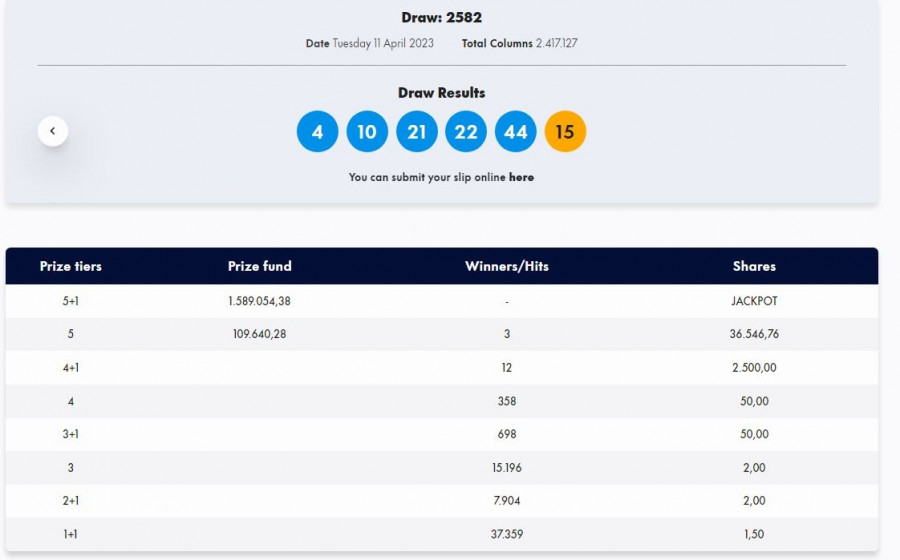 Οι τυχεροί αριθμοί λοιπόν, στη σημερινή κλήρωση Τζόκερ για τη Μεγάλη Τρίτη είναι οι εξής: 4, 10, 21, 22, 44 και Τζόκερ το 15.
