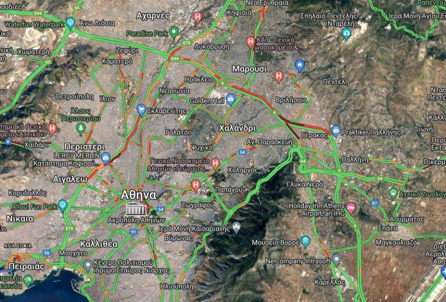Όσον αφορά την κίνηση στους δρόμους, το μεσημέρι της Μεγάλης Πέμπτης, σημειώνονται μεγάλες καθυστερήσεις στην Αττική Οδό στο ρεύμα προς Ελευσίνα.