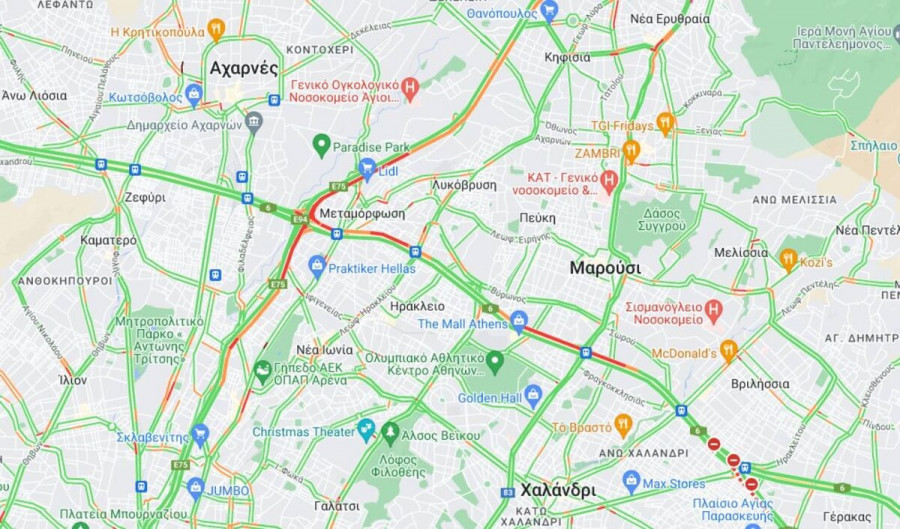 Η κίνηση ξεκινά από το ύψος της Νέας Ιωνίας και διατηρείται εώς και το ύψος της Κηφισιάς με τα οχήματα να κινούνται με χαμηλές ταχύτητες.