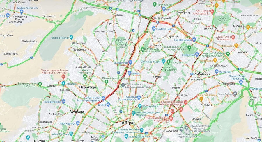 Η μεγαλύτερη δυσχέρεια στην κυκλοφορία σημειώνεται στη Λεωφόρο Κηφισού στην άνοδο.