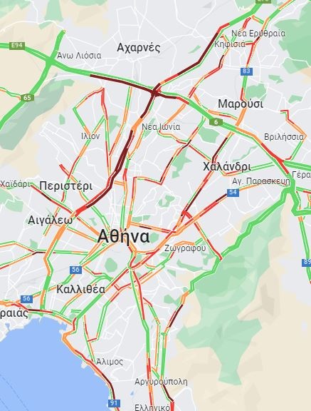 Επίσης, μποτιλιάρισμα σημειώνεται και στη Λεωφόρο Κηφισίας, με την άνοδο να είναι στο «κόκκινο» από το κέντρο μέχρι το Χαλάνδρι.