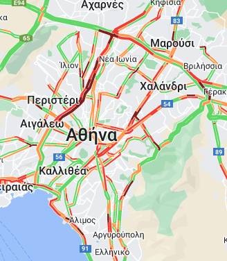Καθηλωμένοι οι οδηγοί στους δρόμους της Αττικής. Αφόρητη κίνηση και «ουρές» χιλιομέτρων σε Κηφισό, Ποσειδώνος, Κηφισίας, Αττική Οδό και Πειραιά.