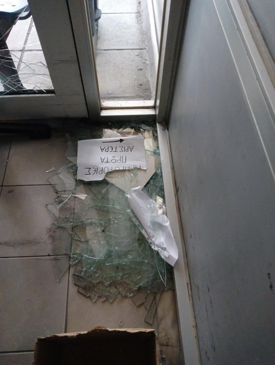Οι φωτογραφίες είναι δηλωτικές για το περιστατικό. Όπως φαίνεται έσπασαν τη τζαμαρία της κεντρικής εισόδου και όπως αναφέρουν αυτόπτες μάρτυρες οι ρομά αποχώρησαν βρίζοντας και απειλώντας ότι θα επιστρέψουν για να κάνουν κακό.