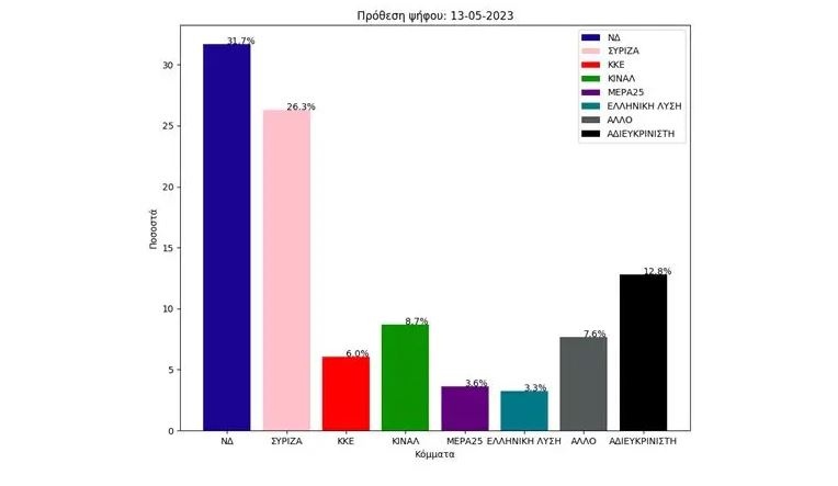 - Εκτίμηση πρόθεσης ψήφου, με αναγωγή επί των εγκύρων (13/5/2023)