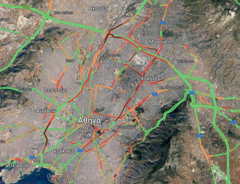 Συγκεκριμένα μποτιλιάρισμα παρατηρείται στην κάθοδο του Κηφισού στο ύψος της Μεταμόρφωσης αλλά και στην άνοδο από την Πειραιώς μέχρι το ύψος του Βοτανικού.